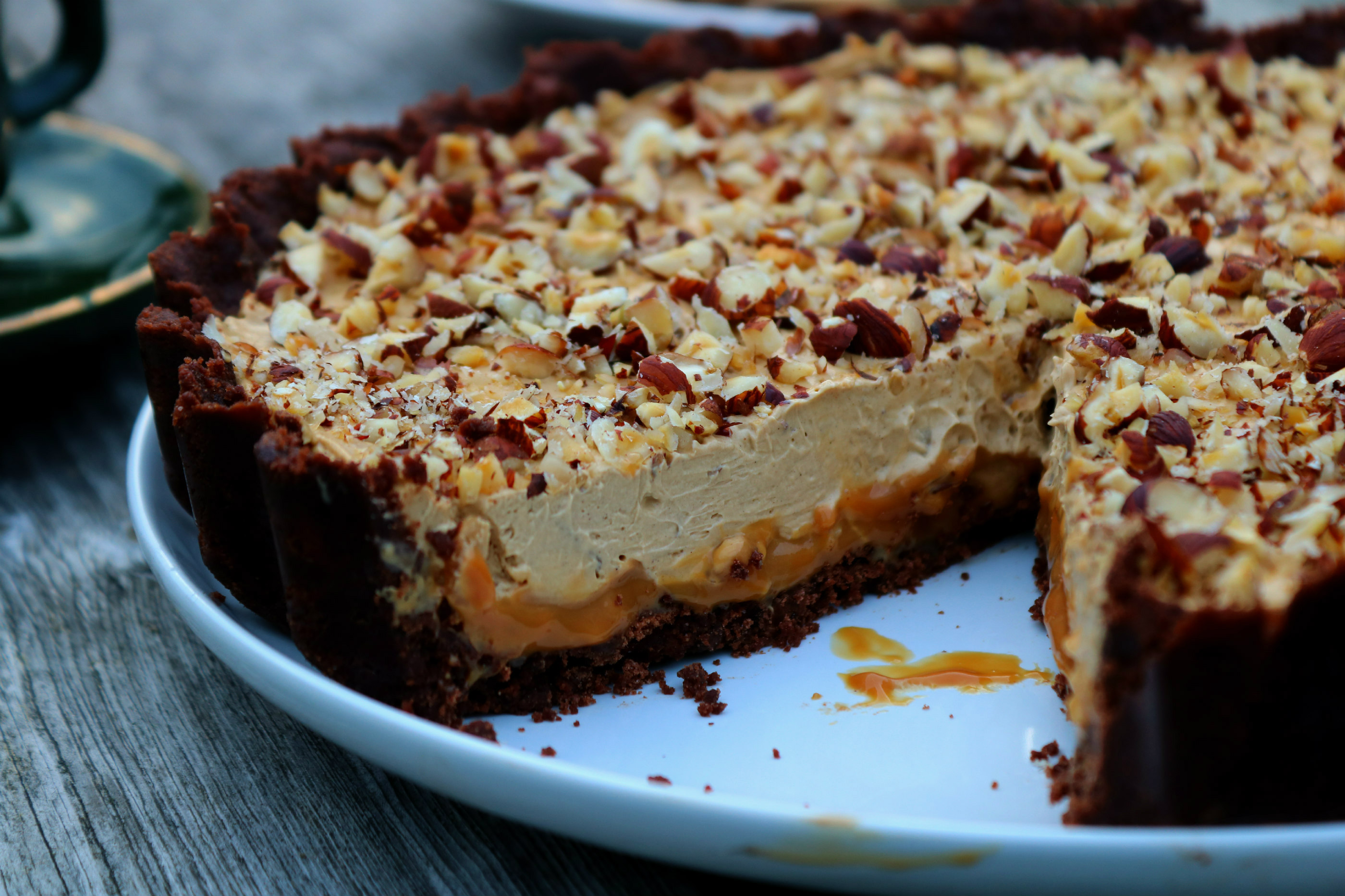 - Sprinkle over the chopped roasted hazelnuts & place the tart in the fridge to chill overnight
