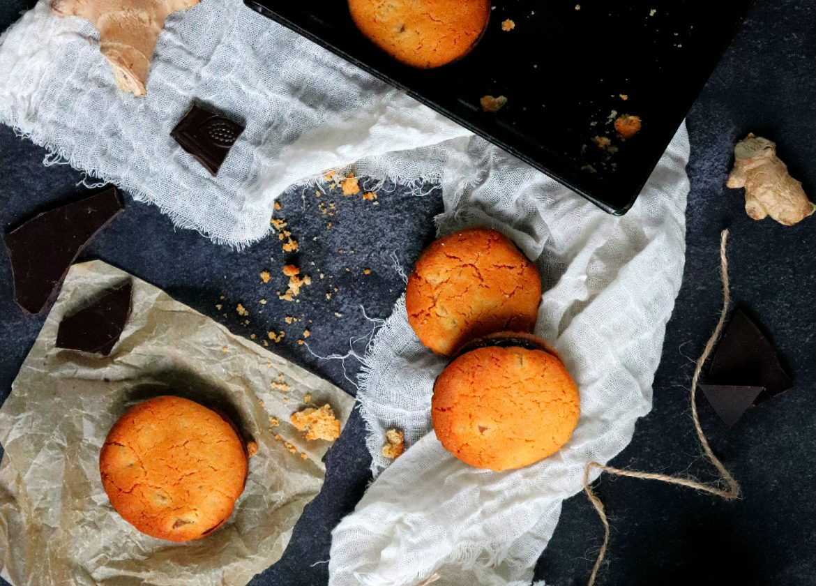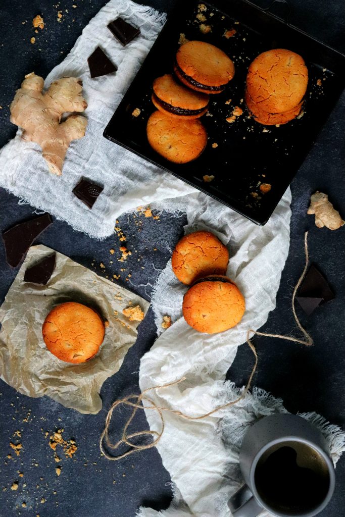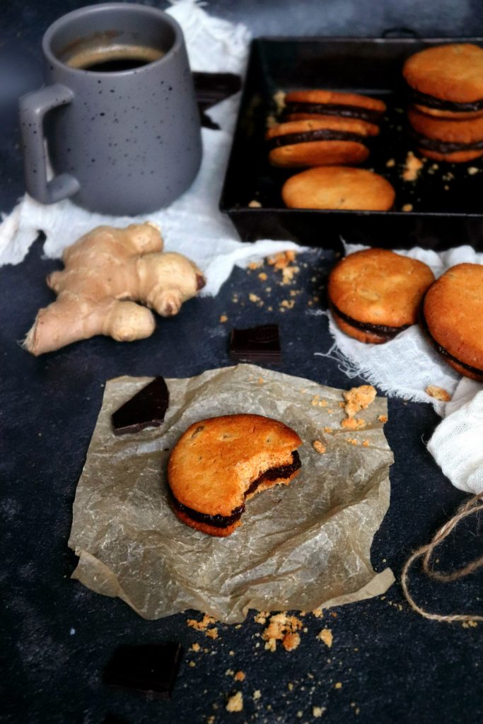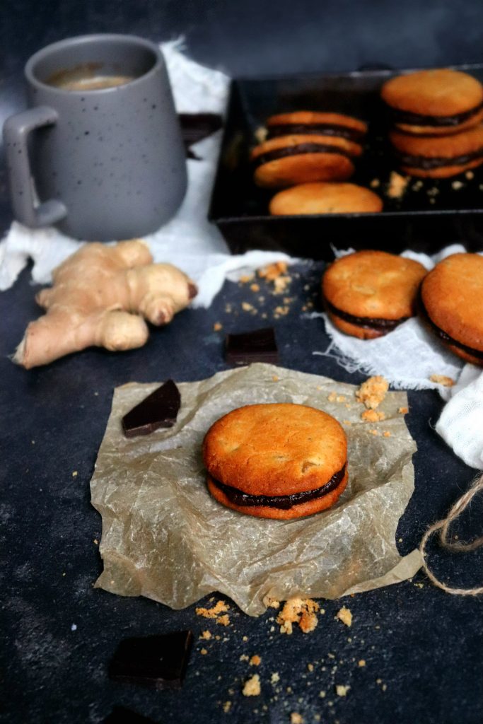 So, I bring you my stem ginger & chocolate biscuits. I prefer the added sweetness of stem ginger, which works so well in biscuits, but to add some balance I’ve sandwiched together my sweet, gingery biscuits with the slight bitterness or a dark chocolate ganache (you’re welcome). These beauties are definitely made for dunking & possibly sharing (perhaps double up to make more for sharing, because I certainly didn’t want to!).
