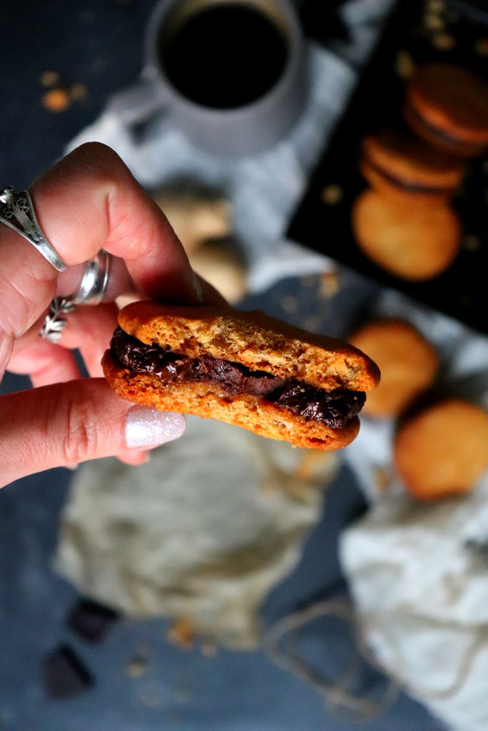 - Once everything is cool, take half of the biscuits & use a the back of a spoon to dollop & spread on the ganache (or you can add the ganache to a piping bag & pipe onto the biscuits)