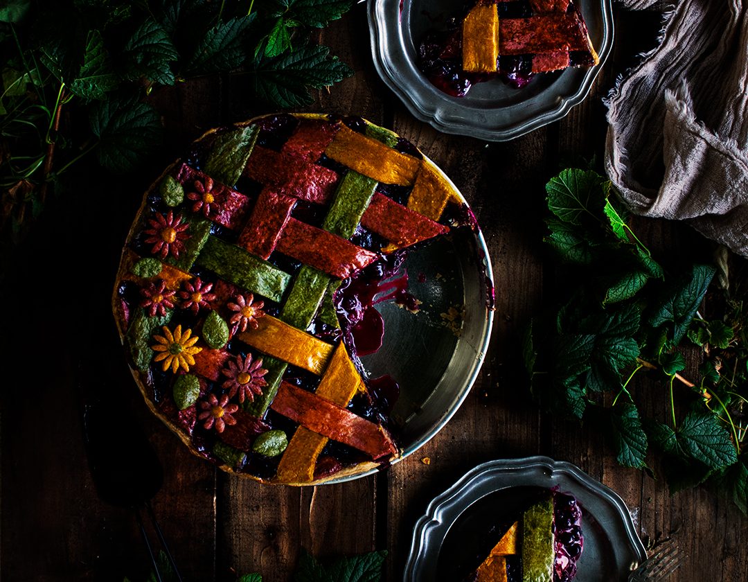 That being said, this summer has been less about sorbets & chilled cheesecakes & more about classic comfort food for us. So naturally, rather than turn my purple bounty into a gorgeous ice cream as I’d originally planned, I opted for a homely, deep filled pie. The rest are stowed away in the freezer though, just incase the sun returns for a summer encore. For added depth of flavour & aroma, I’ve added in a few bay leaves to the mix, mainly because I’ve got a ridiculous stash of them from the allotment to use up but it works & adds a little warmth to an already comforting treat. This blackcurrant & bay pie really is comfort at it’s finest, a sweet, tart, jammy filling meets a crumbly, buttery shortcrust pastry, if anything I guarantee that you’ll forget all about the lack of sun whilst you’re eating this. Serve it whilst still warm with a dollop of ice cream or a dribble of cream to take this to the next level.