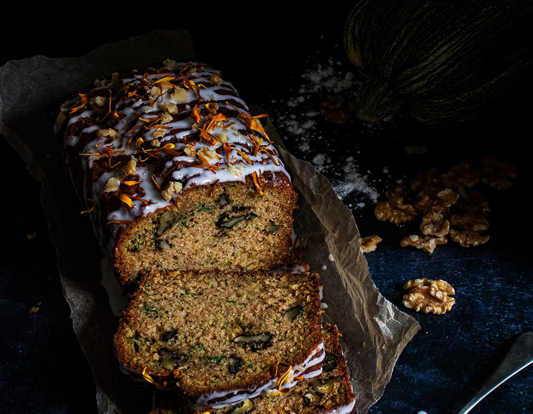 Like with any vegetable cake, this is one is moist, it’s not overly sweet being almost borderline savoury but it’s finished delicately with a light blend of spices & a sweetened elderflower icing to bring it back into sweet perfection. It’s a different yet perfect way to use up a garden glut of courgettes (which ultimately was the aim with this one), but whether you grown your own or buy them in, this is a cake that you need to try at least once in your life (even if purely out of intrigue). This cake has seen many attempts, tweaks & faffing over the years, it’s been baked round, bundt & finally loaf shaped, as such it’s aptly named ‘Courgette cake 6.0’ in my messy little recipe book. A reflection of just how much I love this little cake (or just that I eat a lot of cake). Finally, I’ve nailed the perfect courgette cake, light moist, sweet & summery, I hope you agree it was worth the effort.