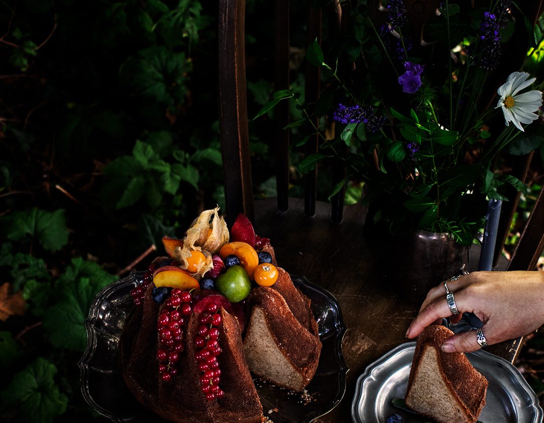 I’m starting simple, before everything is made of pumpkin & spices, I thought I’d pick just one spice to make a simple cake with. A cake which will go well with the colourful fruits I have to hand right now without being overpowering or just full of cinnamon & nutmeg (we’re not there yet!). Most recipes I create in kitchen are based around whatever I have to hand in the moment & this cake is cardamom & yogurt cake is no different. Made using plenty of yogurt this cake has such a beautifully light & moist crumb, a good hit of cardamom adds fragrance & sweetness whilst still remaining relatively plain & simple enough to serve or top with just about anything. Obviously, I’ve topped mine with some seasonal fruit to add one last burst of colour but, this lovely bundt cake can be left plain or topped with whatever you like, plus it’s one of those any time of year recipes which is great when you’ve got little left in the pantry.