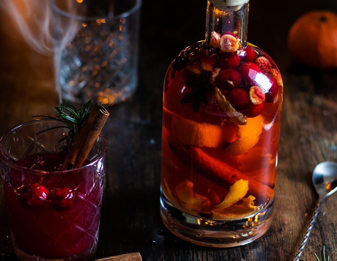 Let’s face it, it just wouldn’t be Christmas without a tipple or two! Be it a glass of fizz with your Christmas dinner, celebratory drinks with friends, a bottle of something fancy given as a gift or the cheeky brandy left out for Santa on Christmas Eve. Each of us has our favourites, personally mine change all through the year, in the summer I Love nothing more than a nice fruity, scrumpy cider, whereas at this time of year I find myself reaching more for the Bailey’s & port. However, there’s one drink that I do love all year round, gin. Not only because of it’s light & refreshing nature but because it can be so easily infused with the flavours of the seasons. For Christmas, I’ve gone gone for full on festive flavour with cranberry, orange & ample spices! As the flavours infuse, the cranberries also lend their festive red colour making for a striking Christmas gin that would make a lovely homemade gift for any gin lover.