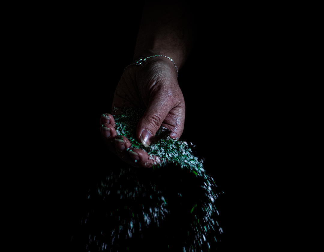 - Place the dried wild garlic leaves along with 75g of the salt into a food processor & blitz until fine
