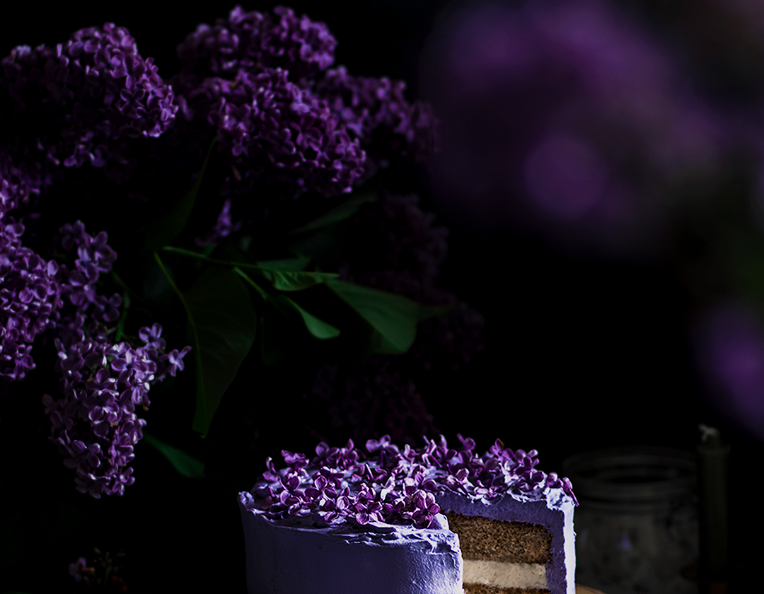 - Scatter the lilac blossom on top of the cake & drizzle over the tsp of honey to decorate